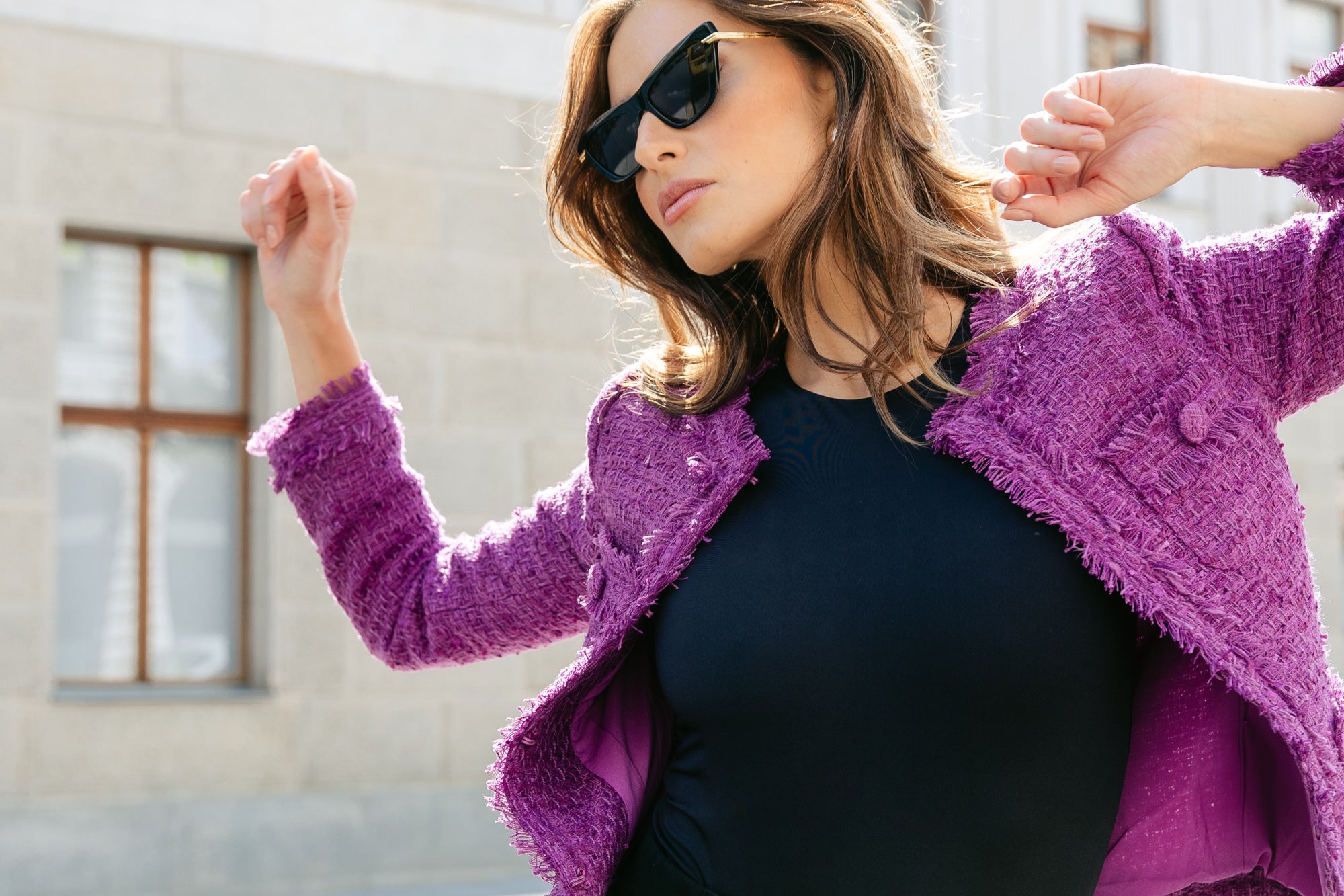 Tweed kann klassisch elegant aber auch lässig zu Sneakers kombiniert werden. Welchen Look man auch bevorzugt – mit Tweed liegt man nie falsch.